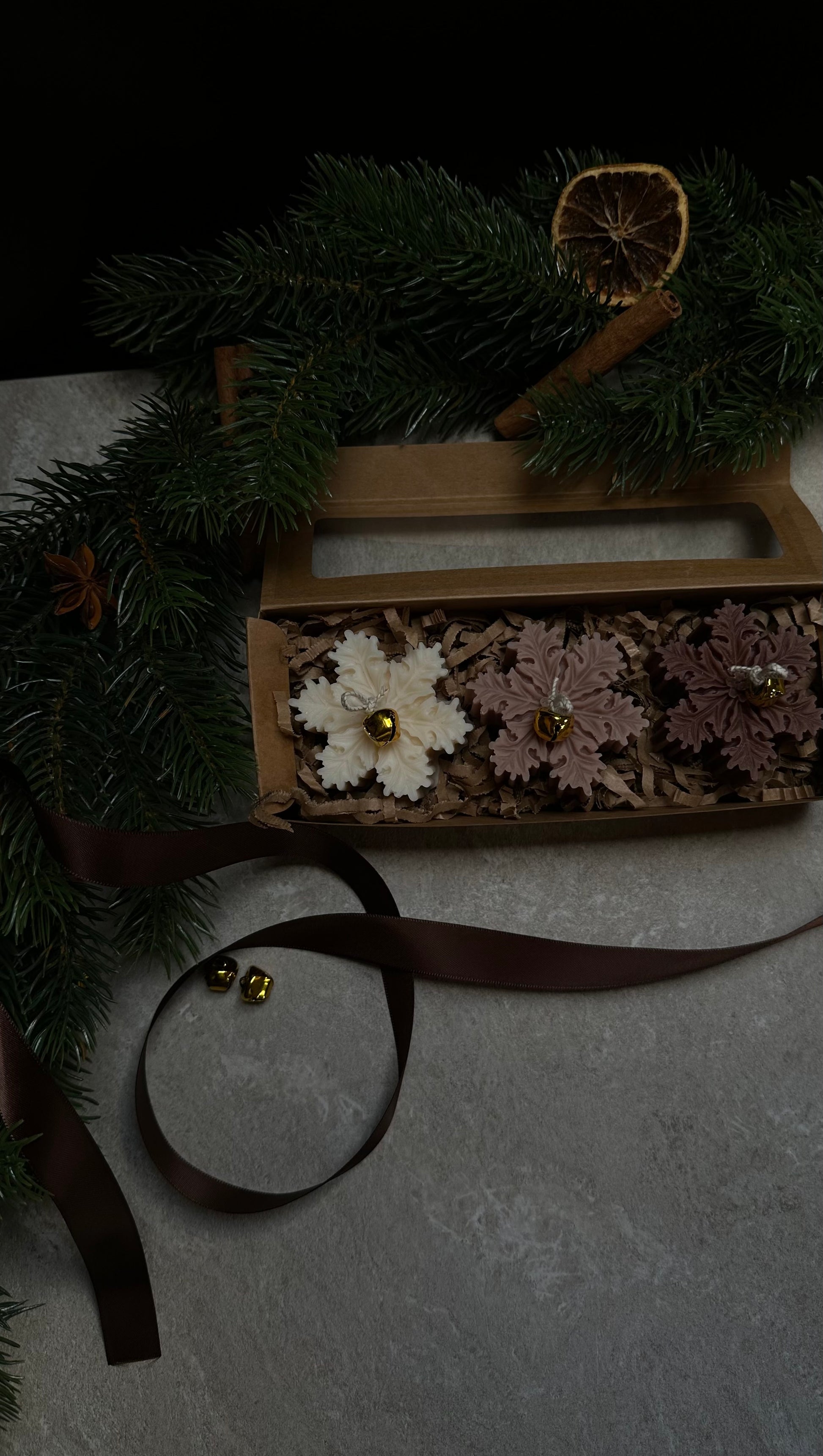 Die braune Geschenkverpackung rundet das Set ab und macht Amberflake zu einem kleinen Stück Winterzauber, das Licht und Wärme in jeden Raum bringt.